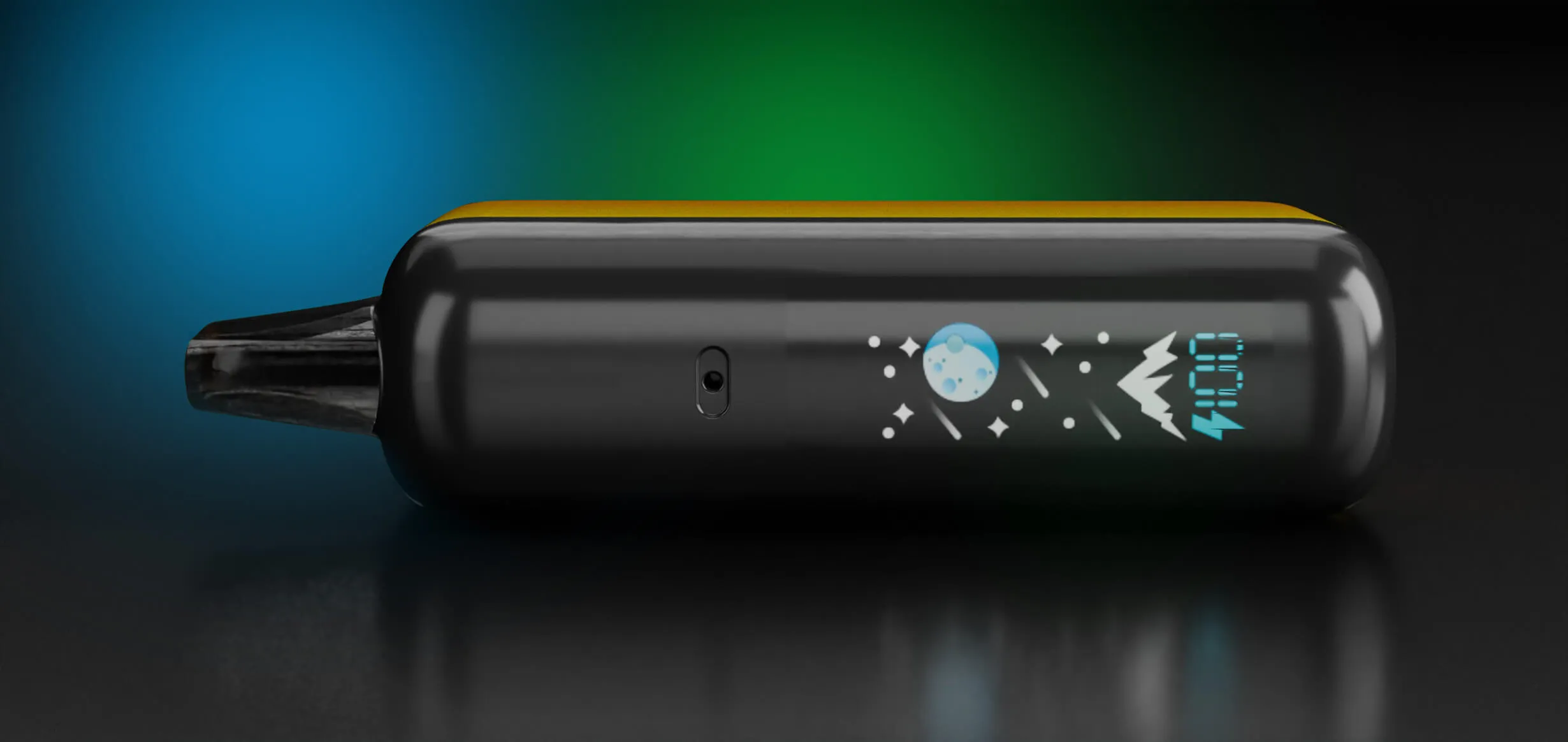 The side cover of the device is half-transparent so that you can clearly see the e-liquid remaining of the pod, meanwhile on the other side sits a digital screen displaying battery status and ripple lighting effect.